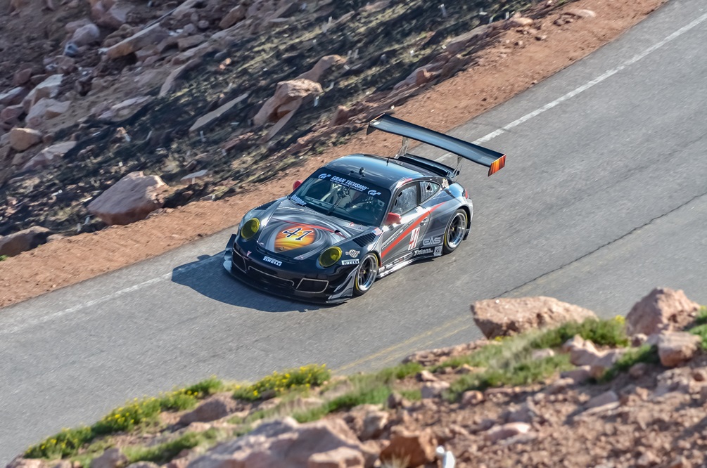 The next milestone came in 2015 when Donner set a class record in the Time Attack 2 group in his 2014 Porsche 911 Turbo S in 10:26.896, amidst typical Pikes Peak weather.