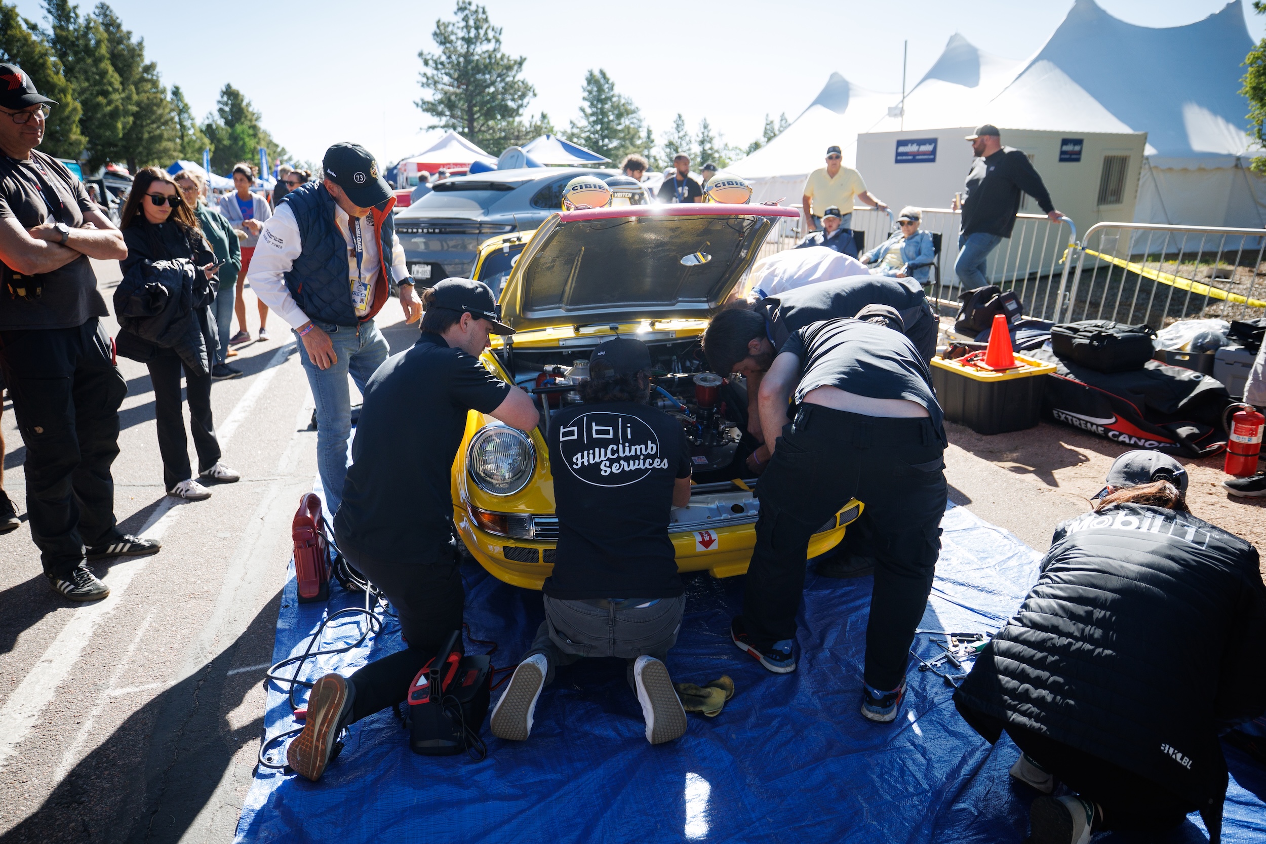 Back on the mountain in 2025, after a hiatus to serve as PPIHC Board Chairman in the interim, Veitch related his experience. “All week, we never had any mechanical issues. But, on race day, the car wouldn’t start. There was no spark to the battery. We had eight or nine Porsche mechanics come over to look at it. They were looking for a corroded lead into the starter switch and a fuse box problem. One of the Porsche mechanics figured it out, and OPTIMA was right there and gave me a new battery and Betim from BBi Autosport hooked it up. Everyone just jumped in and got it back to running.”