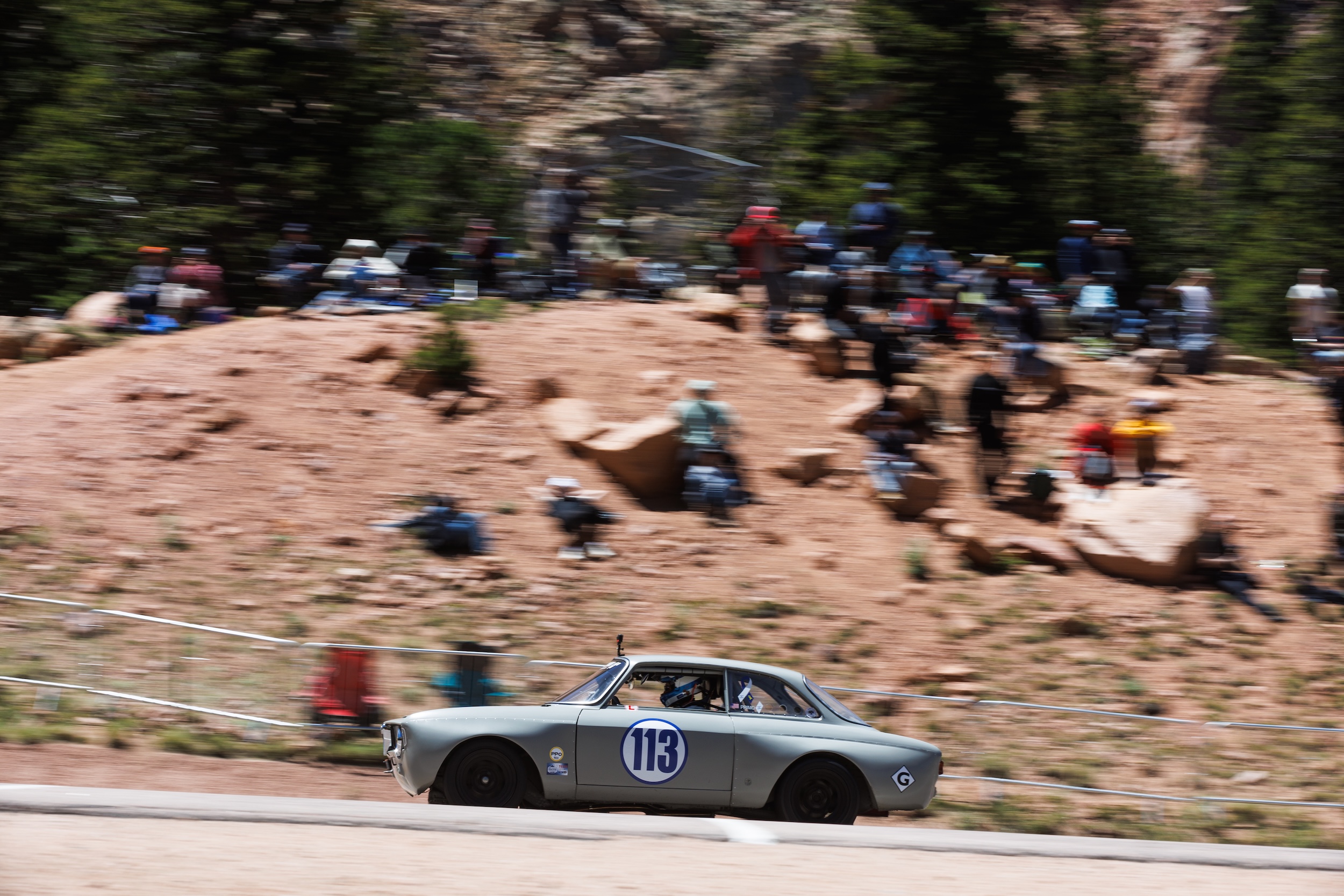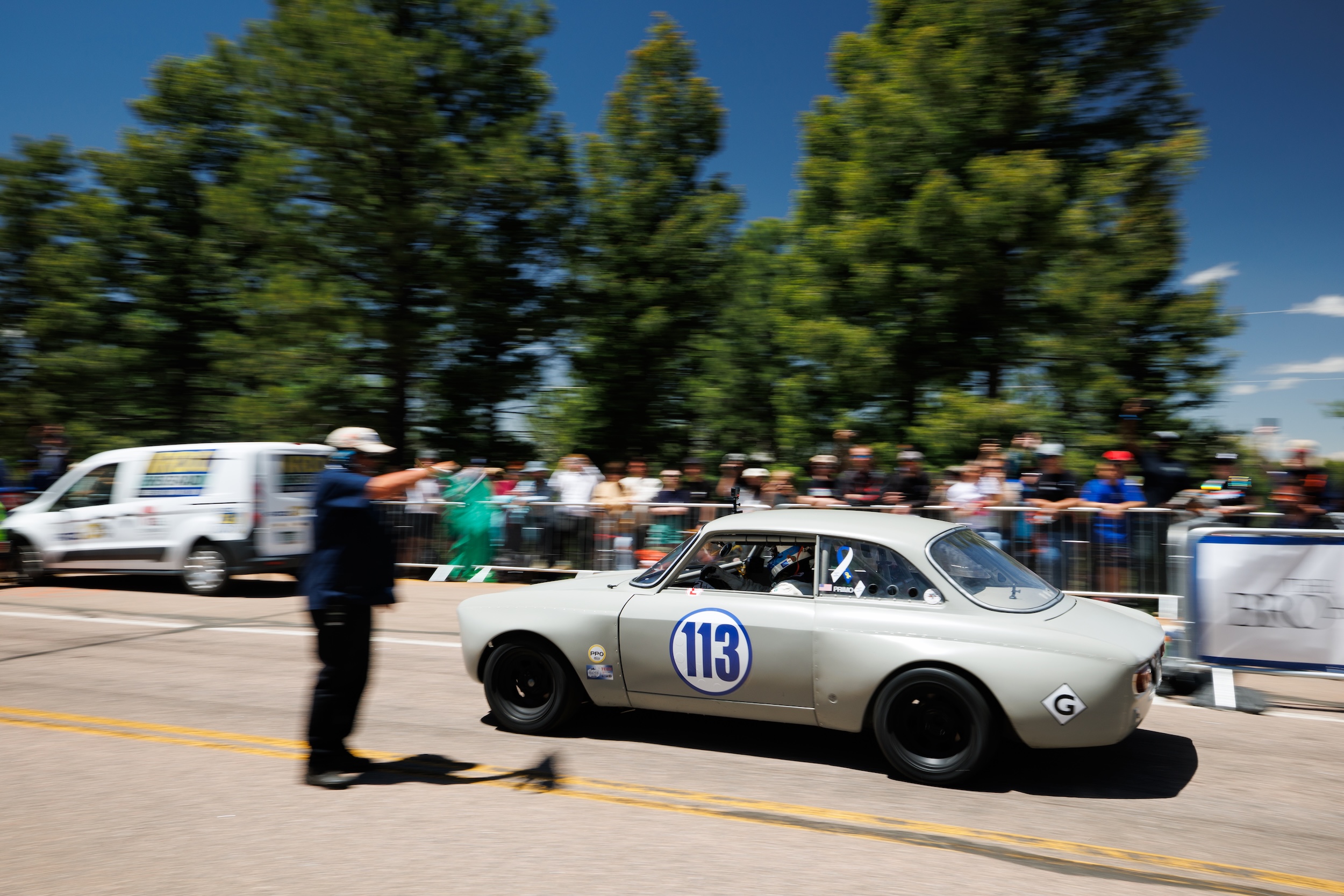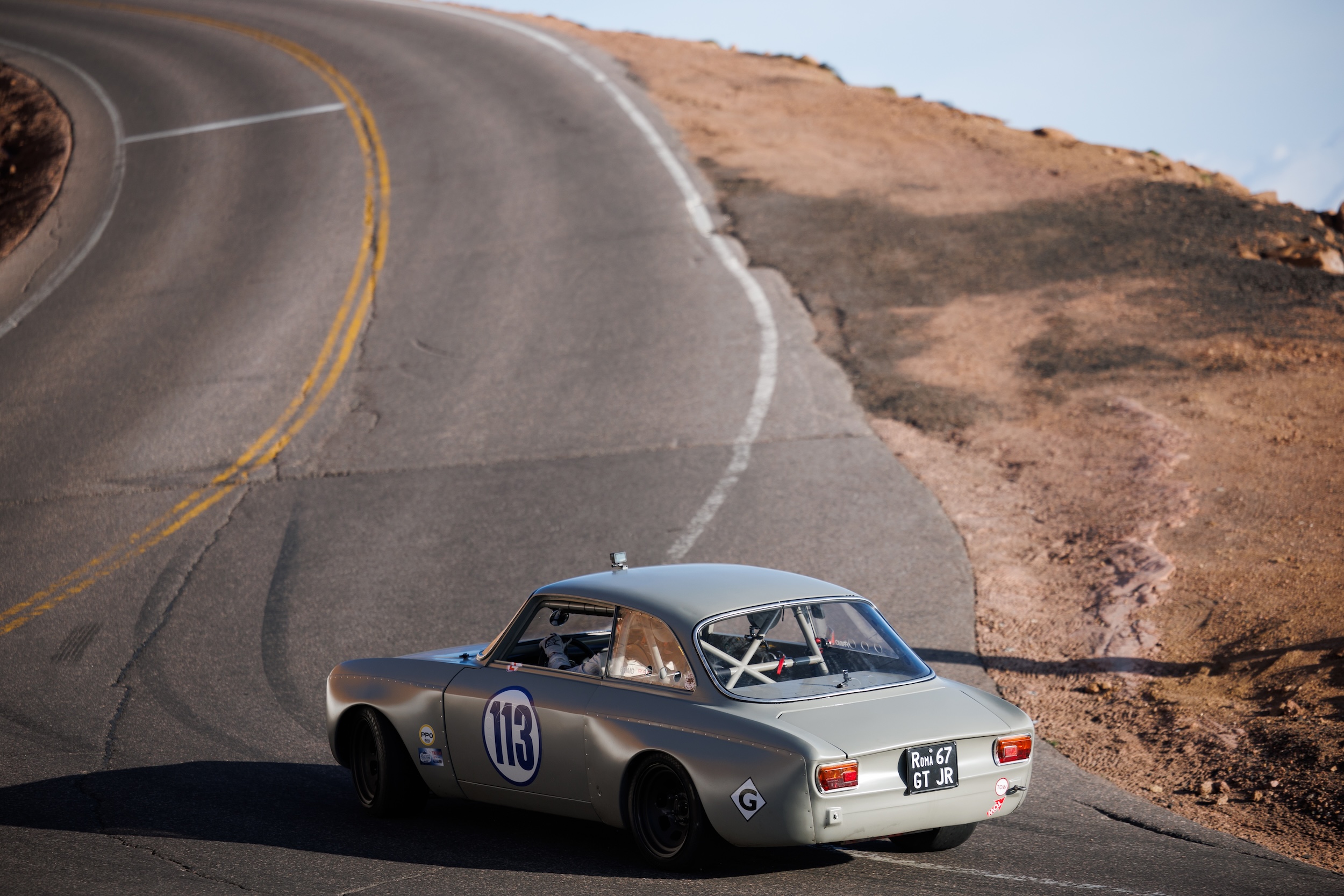 What is the significance of your race number? “The car color is the same that Alfa Romeo used in 1967 for the police cars in Italy (stone grey). Those police cars had a big dial shape, like an old dial phone, with the number 113 inside. So, if you wanted the police dial 113. It’s the same as dialing 911 here.”